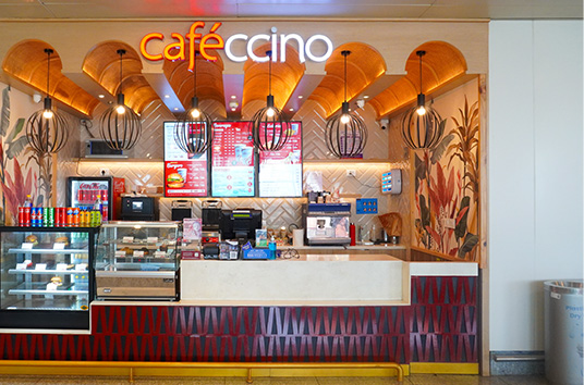 Cafeccino is a cozy and inviting outlet at the airport offering travellers a refreshing stop for high quality beverages and snacks.