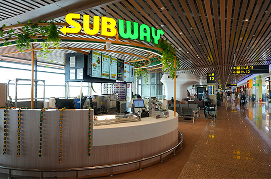 A global fast-food giant, KFC at the airport serves its iconic fried chicken, burgers, and wraps.